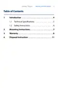 - Page 2: Introduction Technical specifications Safety instructions Mounting instructions Warranty Disposal instruction