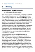 - Page 7: Installation guide for DEVIreg™ Plug-in. A 2-year product warranty is valid for thermostats: DEVIreg™ Plug-in. Danfoss offers a warranty valid from the date of purchase under specific conditions. During the warranty period, Danfoss will provide a new comparable product or repair the product if found faulty due to defective design, materials, or workmanship. The decision to repair or replace will be at the discretion of Danfoss. Danfoss is not liable for consequential or incidental damages, including property damage or extra utility expenses. No extension of the warranty period is granted following repairs. The warranty is valid only if the warranty certificate is completed correctly and proof of purchase is provided. The warranty certificate must be filled in, stamped, and signed by the authorized installer. Keep the warranty certificate and purchase documents during the entire warranty period.