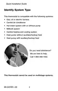 - Page 2: Quick installation guide This thermostat is compatible with the following systems: Gas, oil or electric furnace Central air conditioner Hot water system with or without pump Millivolt system Central heating and cooling system Heat pump without auxiliary/backup heat Heat pump with auxiliary/backup heat This thermostat cannot be used on multistage systems.